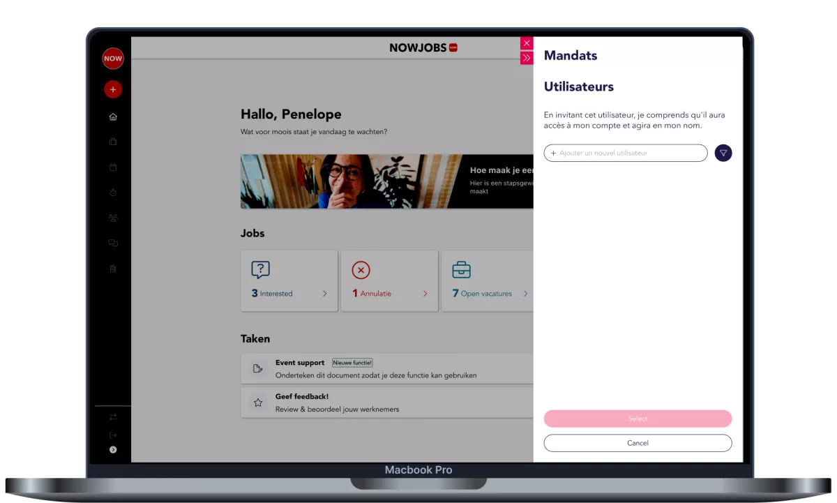 Chez NOWJOBS, nous savons que la gestion d’une équipe flexible est souvent une responsabilité partagée. C'est pourquoi nous avons simplifié l'ajout d'utilisateurs supplémentaires à votre compte entreprise : que ce soit votre responsable RH, copropriétaire, ou responsable financier, chacun peut obtenir un accès sécurisé à votre profil NOWJOBS.