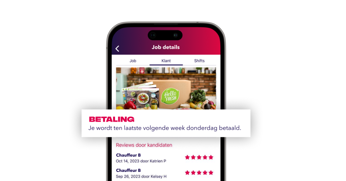 Handige tip: bij vacatures zie je op voorhand wanneer je je loon krijgt. Als je op de vacature klikt en dan naar het kopje 'Klant' gaat, zal je zien wanneer je wordt uitbetaald.