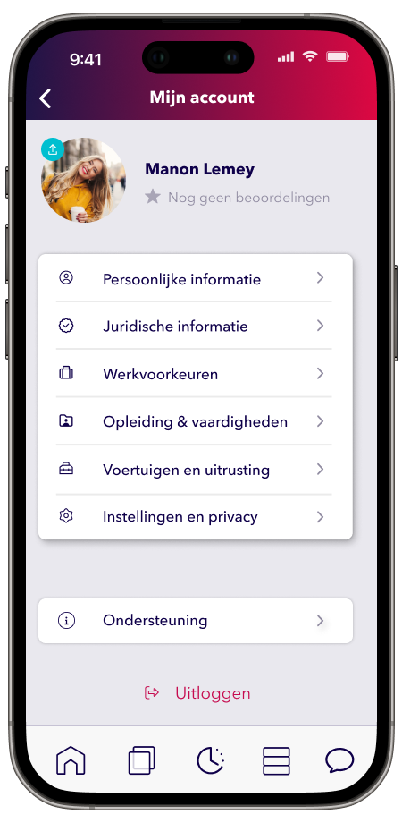 - Open de app, ga linksboven naar ‘Mijn account’ door op je profielfoto of naam te klikken, en klik op 'Nog geen beoordelingen'.