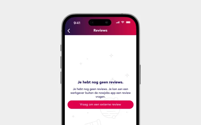 Maar wat als je nieuw bent bij NOWJOBS of nog geen reviews hebt ontvangen? Geen zorgen! Daar hebben we een oplossing voor. Via de app kun je met slechts enkele klikken externe reviews van vorige werkgevers aanvragen.