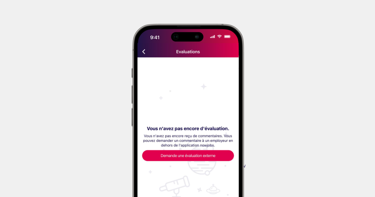 Mais que faire si vous êtes nouveau sur NOWJOBS ou si vous n'avez pas encore reçu d'avis ? Nous vous entendons déjà penser : "N'ai-je pas moins de chances d'être choisi ? Pas d'inquiétude, désormais nous avons une solution pour cela ! Vous pouvez demander une évaluation externe à vos anciens employeurs en quelques clics via l'application.
