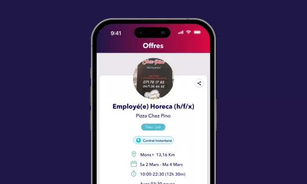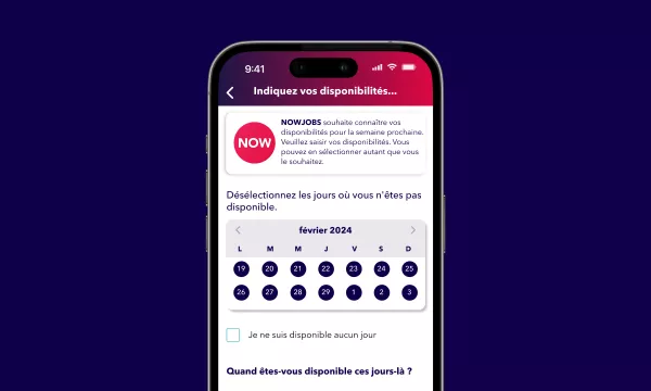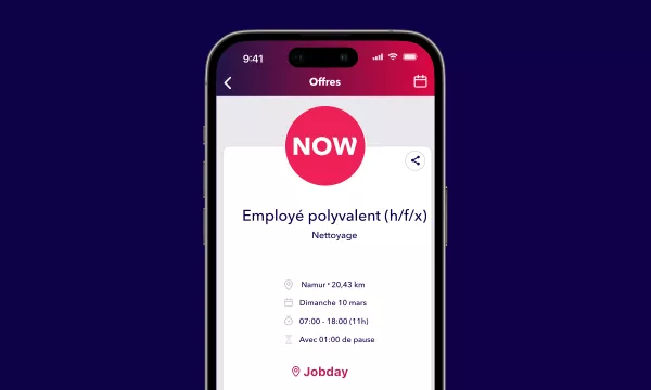 Un revenu supplémentaire près de chez vous, qui correspond à vos attentes, qui vous permet d'acquérir de nouvelles compétences et de rencontrer de nouvelles personnes, c'est le rêve ! Avec NOWJOBS, vous pouvez trouver le flexi-job, le job étudiant ou le revenu complémentaire en un rien de temps. Et vous n'avez pas à vous soucier de la paperasse : nous nous occupons de tous les contrats et de l'administration, y compris du contrat que nous concluons avec votre employeur.