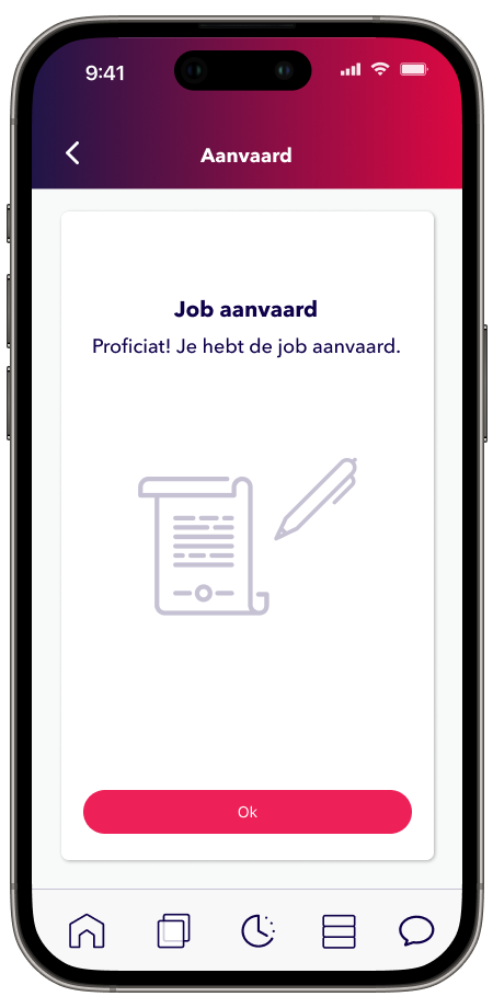 Heb je een match? Dan ontvang je een contractvoorstel rechtstreeks in de app. Accepteer het voorstel en maak je klaar om uit de startblokken te schieten. Because you’re good to go!