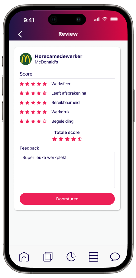 Got the job done? Laat je ervaring spreken! Geef het bedrijf waar je hebt gewerkt een beoordeling en een score van 1 tot 5. Op die manier help je andere bijverdieners én werkgevers. Ondertussen beoordeelt je werkgever hoe tevreden die was met je hulp. Een goede score op jouw naam opent deuren!