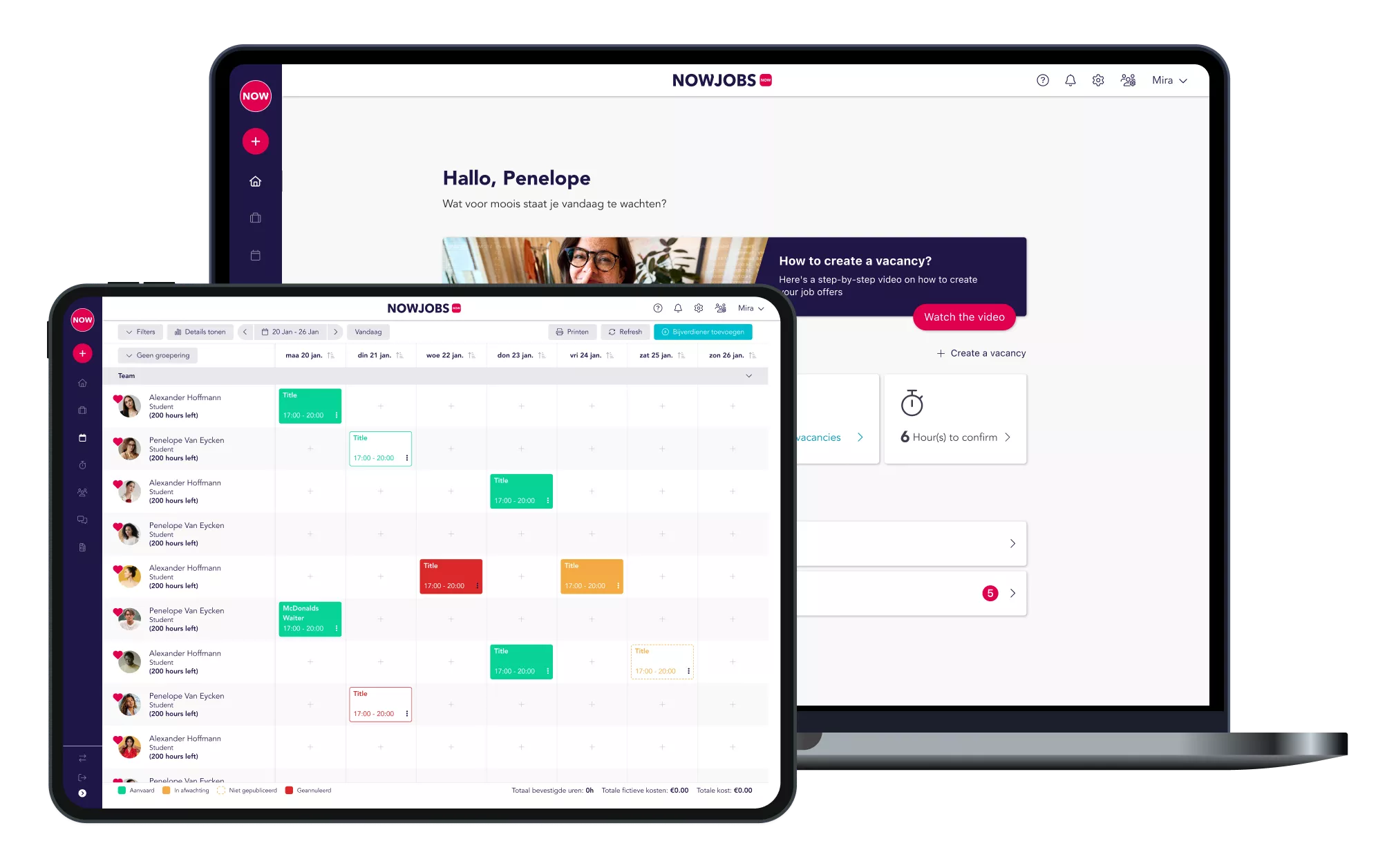 De toekomst is digitaal. And the future starts NOW! Want NOWJOBS heeft naast een app ook een webplatform. Je kan dus inloggen via je smartphone, maar ook via je computer of laptop. Je personeelsplanning opstellen wordt zo makkelijker dan ooit!