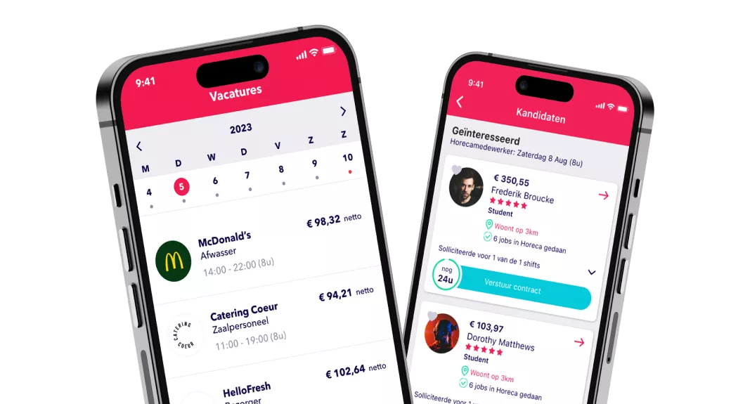 Het is simpel. Je vindt een job via onze app en zet je beste beentje voor. Na de shift vraag je je tevreden werkgever om je gewerkte uren zo snel mogelijk te bevestigen. Is alles goedgekeurd? Dan staat je loon razendsnel op jouw rekening dankzij de flitsbetalingen van KBC!