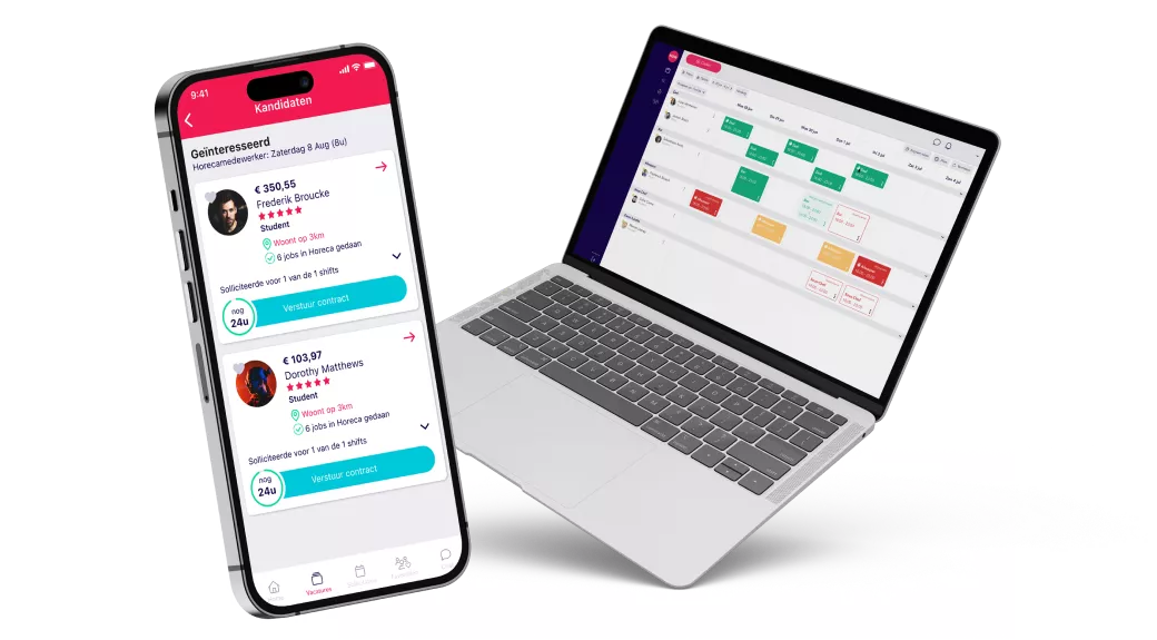 - Dankzij de applicatie kan je overal, 24/7, een bijverdiener vinden of je werkplanning raadplegen.