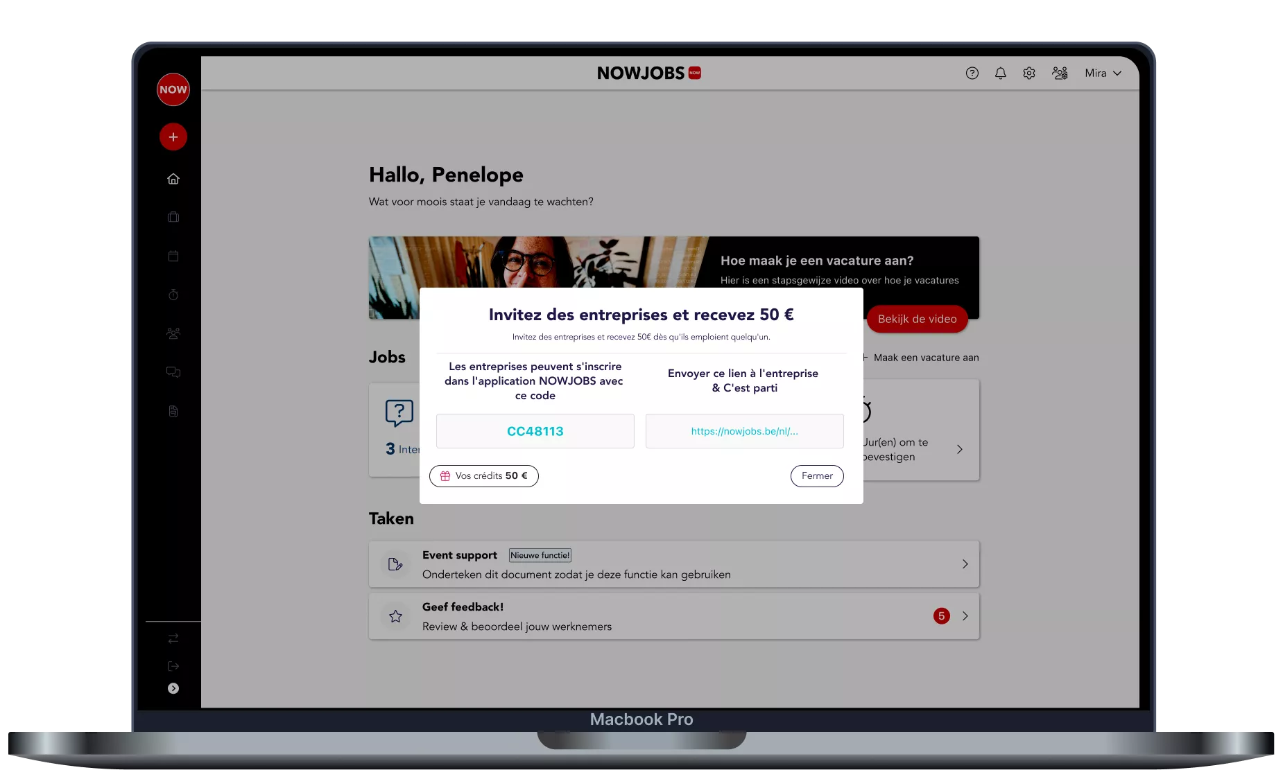 Nous sommes sûrs que vous pourrez facilement convaincre les entreprises de travailler avec NOWJOBS : c'est facile, rapide, 100% digital et sans paperasse ! Nous vous donnons même une raison supplémentaire de télécharger NOWJOBS : les entreprises que vous ferez venir bénéficieront d'une réduction de 50 € sur leur premier contrat.