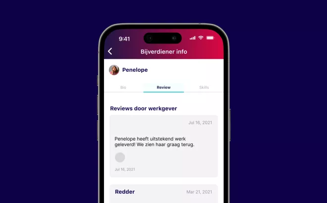 Open de app of het webplatform en lees de reviews van jouw toekomstige bijverdieners.