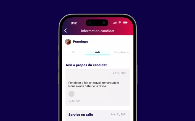 Ouvrez l'app ou la plateforme web et lisez les évaluations de vos futurs collaborateurs.
