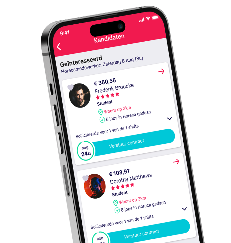 Maar bezorgt zo’n extra app een zaakvoerder dan geen extra werk? “Helemaal niet”, zegt Peter. “Alles wordt door NOWJOBS tot in de puntjes geregeld: van Dimona-aangifte en verzekeringen tot uitbetaling. Bovendien heeft de app een handige tool voor tijdregistratie, waardoor discussies over gewerkte uren verleden tijd zijn. NOWJOBS heeft een waterdicht systeem dat ervoor zorgt dat bijverdieners altijd krijgen wat ze verdienen. En wij als bedrijf, wij kunnen dankzij dat systeem een succesverhaal schrijven!”