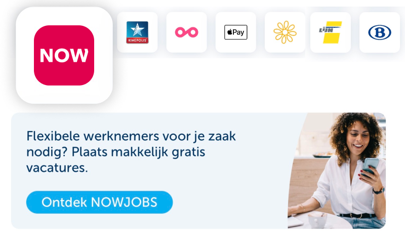 Door een partnership ontstaat een ecosysteem waarin 2 merken elkaar sterker maken. Wij hebben de bijverdieners, jullie de jobs! Ons partnership komt tot stand wanneer jouw bijverdieners via NOWJOBS gevonden en tewerkgesteld worden.