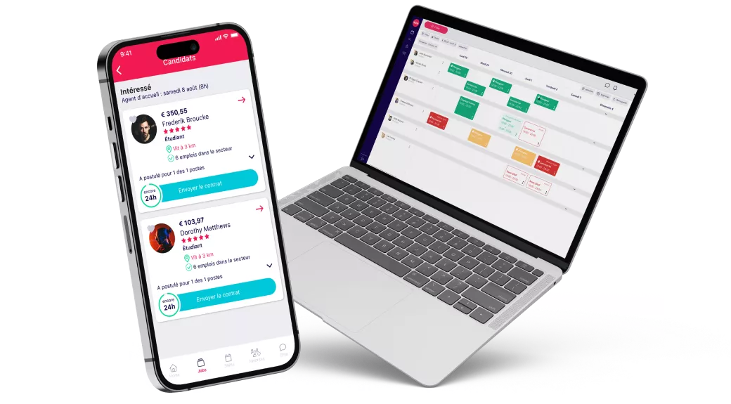 - Grâce à l'application, vous pouvez trouver un salarié supplémentaire ou consulter les horaires n'importe où, 24/7 heures.