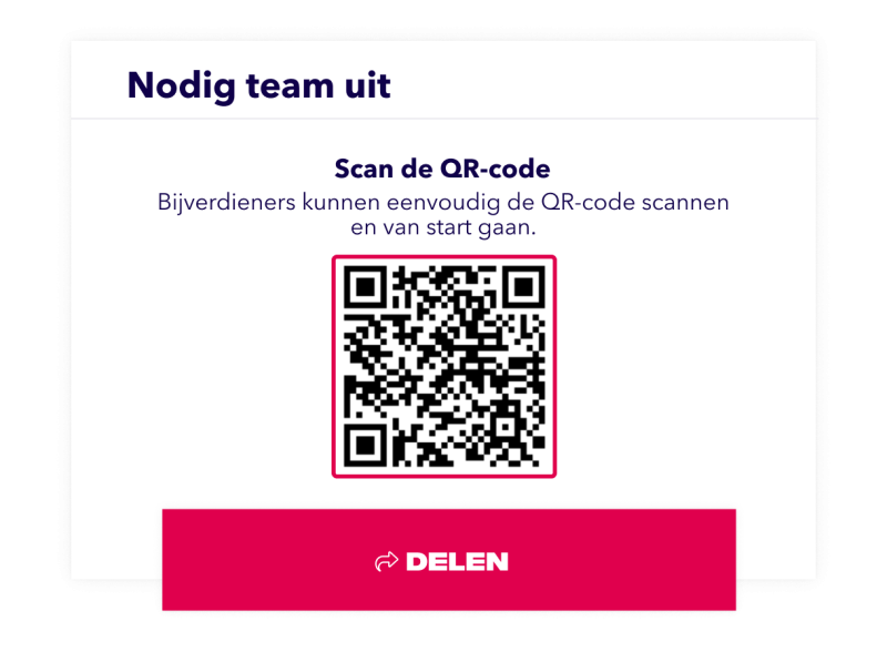Vormen jouw medewerkers en bijverdieners een sterke ploeg? Never change a winning team! Via de NOWJOBS-app of het webplatform kan je je eigen medewerkers of bijverdieners inschrijven, tegen een voordelig tarief. Nodig ze uit om NOWJOBS te gebruiken: vraag hen om de QR-code in de app te scannen en 2u later kunnen ze bij jou al aan de slag. Op die manier bouw je makkelijk en digitaal een flexibele team van betrouwbare bijverdieners uit. Da’s een dreamteam dat jouw toekomstige shifts tot een goed einde brengt!