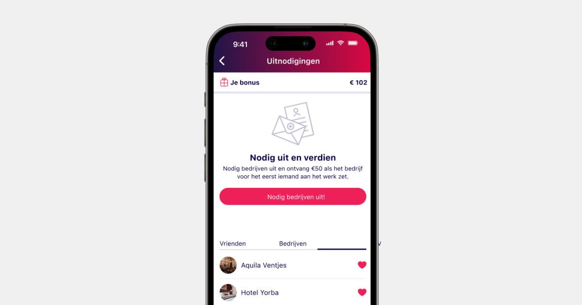 Nodig een bedrijf uit via de knop op je startscherm van de app.